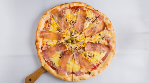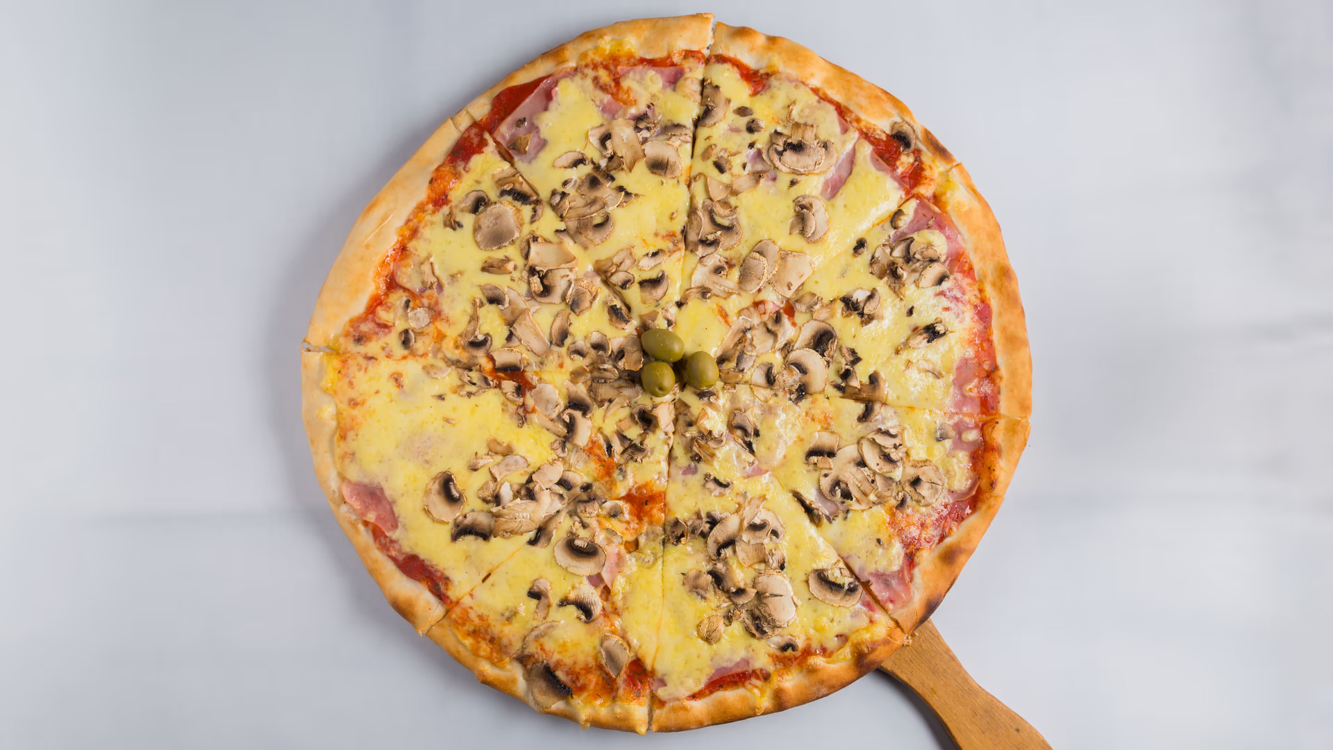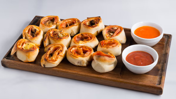 Rolovano pica testo filovano nadevom od pelata, sira, šunkarice i šampinjona