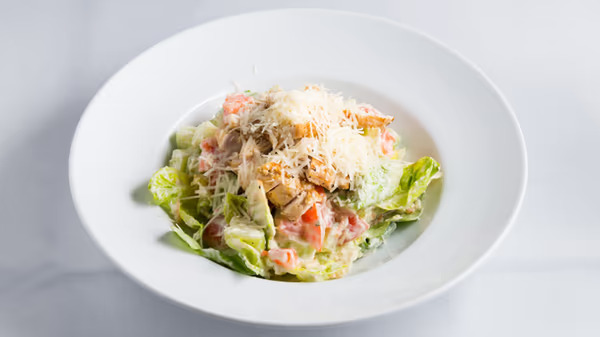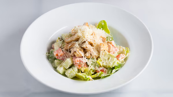 Zelena salata, paradajz, krastavac, parmezan, masline i dresing