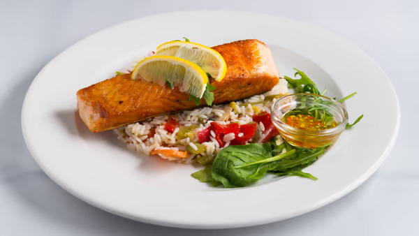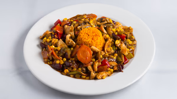 Riza sa mixom povrća i piletinom u slatko ljutom sosu